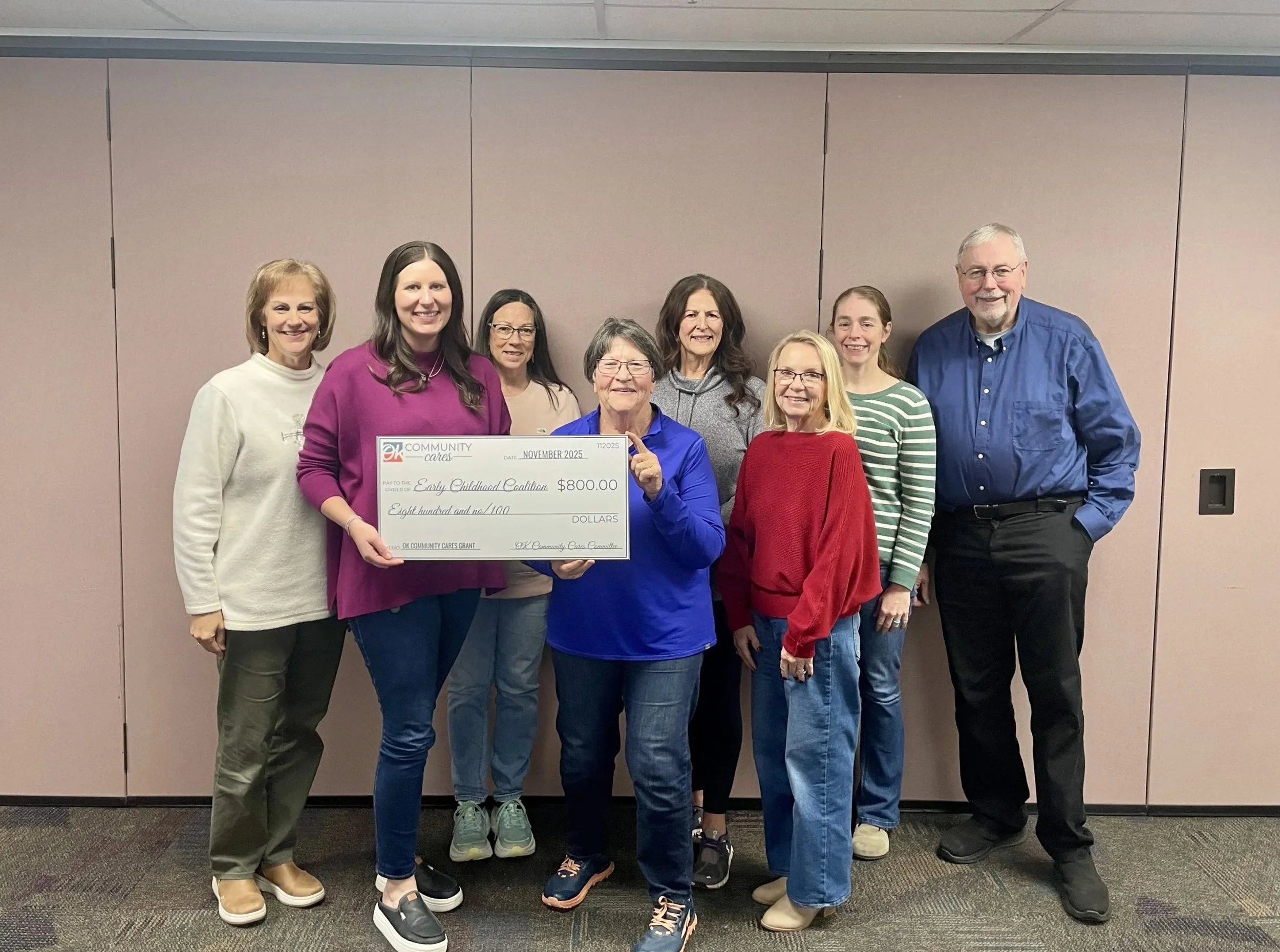 At the November ECC board meeting, Oklahoma Community Credit Union awarded us an $800 grant through OK Community Cares, directly funding Brain Bags for newborn families at Stillwater Medical Center. Their partnership helps us reach local families at a crucial moment in their child's development.